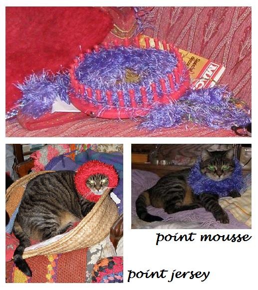 Récemment ont paru sur le marché les Knitting Looms en plastique souple ou non, circulaires ou rectilignes. Mes aiguilles à tricoter étant déjà dans les cartons lorsque le froid est arrivé, je me suis intéressée à cette nouvelle technique qui permet de faire tous les points de base, le jacquart, de ne pas perdre de mailles en regardant la télévision car il se met en place automatiquement un contrôle des fils au doigt lorsqu’on ne regarde pas ce qu’on fait et d’avancer rapidement. Le chauffe-cœur que présente Nour a été réalisé en une soirée au point mousse avec un reste de laine fourrure violette. La cagoule (protège-oreilles) est au point jersey et a demandé deux soirées, j’ai utilisé toute une pelote de laine fourrure à poil plus court que la précédente, ce qui permet de lui donner un petit air de Moyen-Âge. La laine a été tricotée en fil simple.