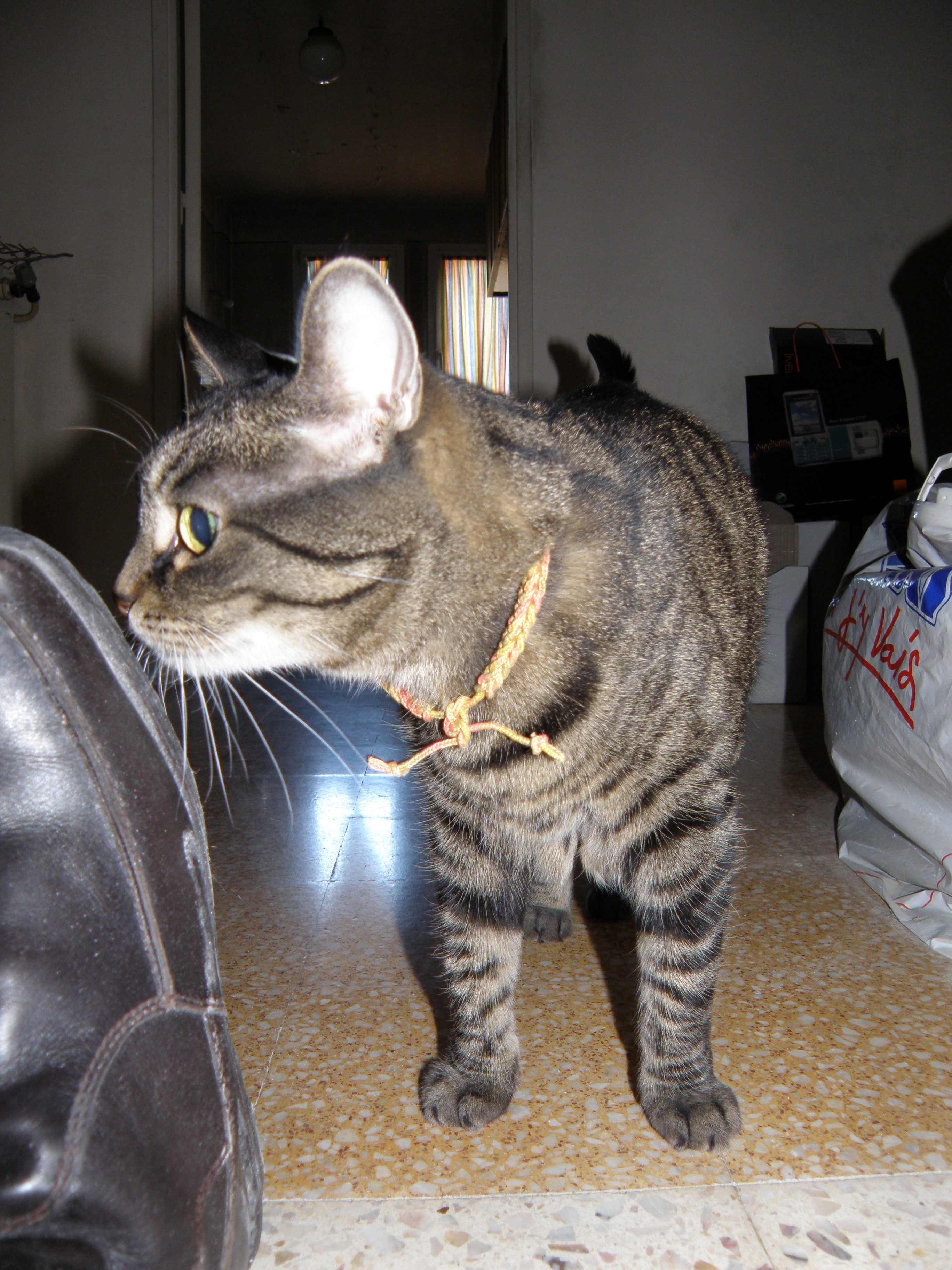 J’ai eu un nouveau collier couleur cuir en maille palmier. Il a fallu passer un écheveau entier deux fois à la lucette pour avoir la bonne longueur. Pour donner une idée : j’ai un collier et un harnais de sortie pour petit chien, taille 25 cm.