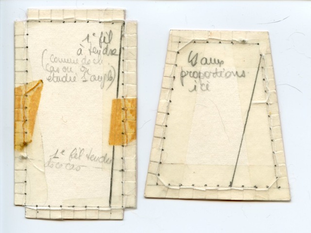 - au recto, lancer le fil à travers le support pour le glisser dans l’encoche correspondante à l’extrêmité du segment de droite pré-tracé au verso