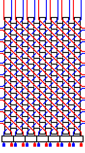 Suivons en rouge les fils qui partent vers la gauche et en bleu ceux qui partent vers la droite :