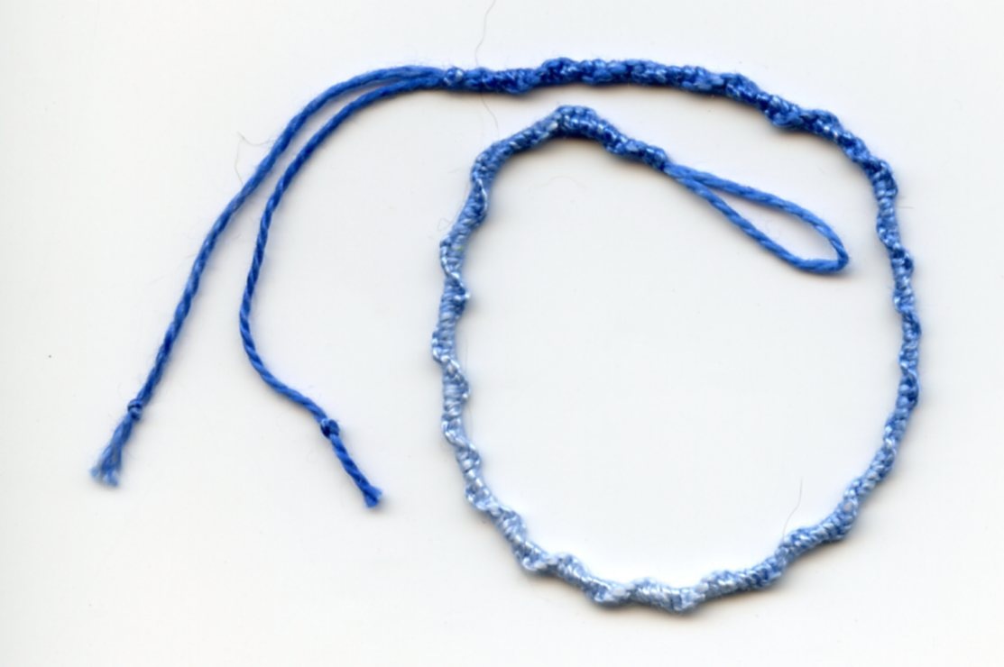 - nouer les deux brins sur eux-mêmes pour terminer la partie nouée comme elle a été commencée
