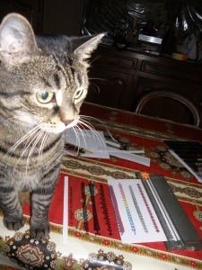 pour bien faire, il faudrait trouver un truc pour les plastifier… plastique adhésif transparent pour recouvrir les livres de classe du côté encré avant découpage – à suivre.