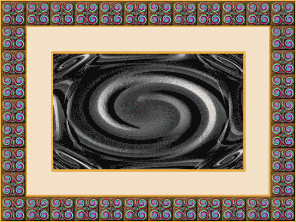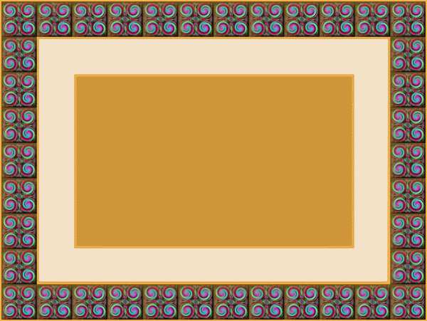 n’ont pas une largeur constante. C’est pourquoi, faute de calculs préliminaires, les cadres corrects précédents ont une seule dimension prévue exactement. MAIS j’entrevois un effet de perspective qui serait peut-être à préciser (les motifs ne devant pas être déformés, en tout cas pas de cette façon). Les liserés, par contre, sont corrects.