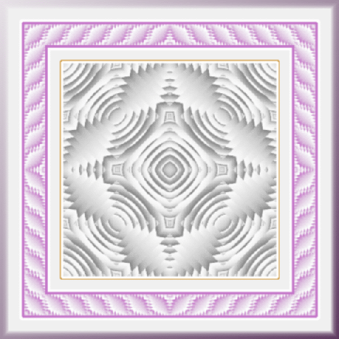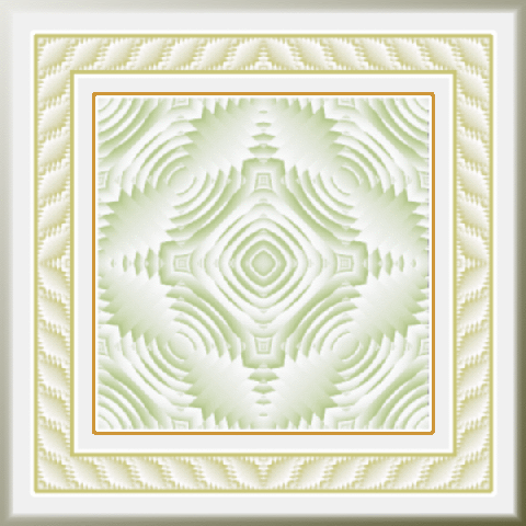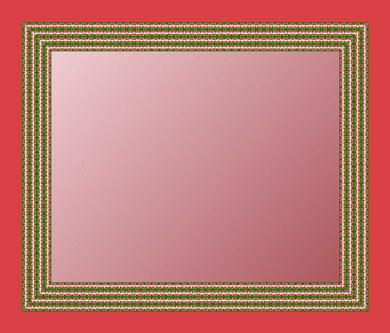 L’ombre et la lumière sont cohérentes sur les deux biseaux, mais le fond du tableau n’est plus éclairé correctement. Laissons en place sur le Calque 3 la portion de gradient correspondante au biseau intérieur et faisons un “couper-coller sur un nouveau calque” d’un rectangle de gradient qui colorera le biseau intérieur. Puis appliquons au Calque 4 ainsi créé Calque/Retourner horizontalement et Calque/Retourner verticalement. la sélection passe n’importe où à l’intérieur de toute la Marie-Louise