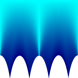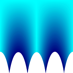 Voici le gradient que sTile présente à son ouverture, nous pouvons l’enregistrer en .gif, pas en .png, sTile ne gère pas ce format. Puis la transformée de coordonnées polaires en rectangulaires. Puis un cadre de 600 sur 450 pixels, les tuiles étant réduites à 75 sur 75 pixels.