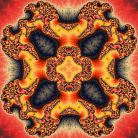 Appliquer Effets / Déformer / Kaléidoscope, puis Effets / Déformer / Polar Transformation P —> R