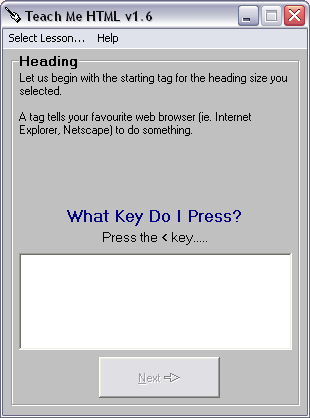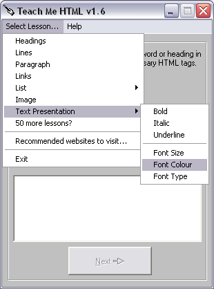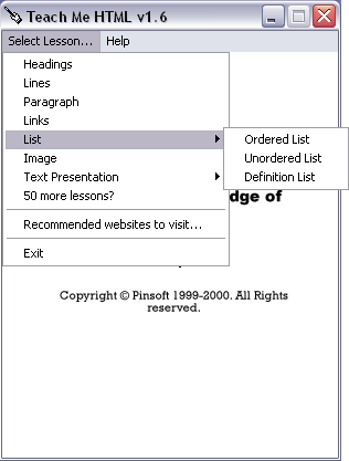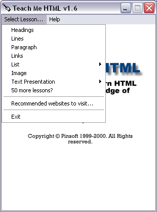 le menu Leçons/Lessons nous indique ce que nous allons apprendre à mettre en HTML :