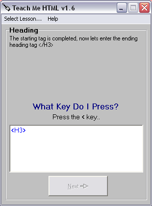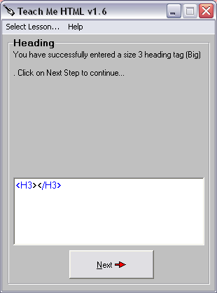 Faisons-le, il nous guide ensuite de même jusqu’à ce que nous ayons tapé <H3>,