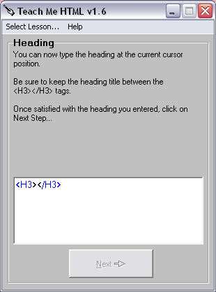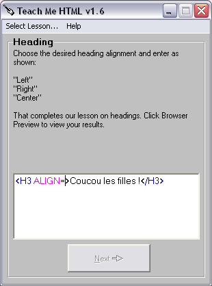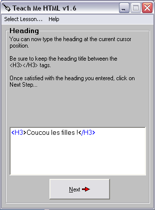 Vous avez réussi à entrer les balises pour avoir un en-tête de taille 3, cliquez sur le bouton Étape suivante pour continuer