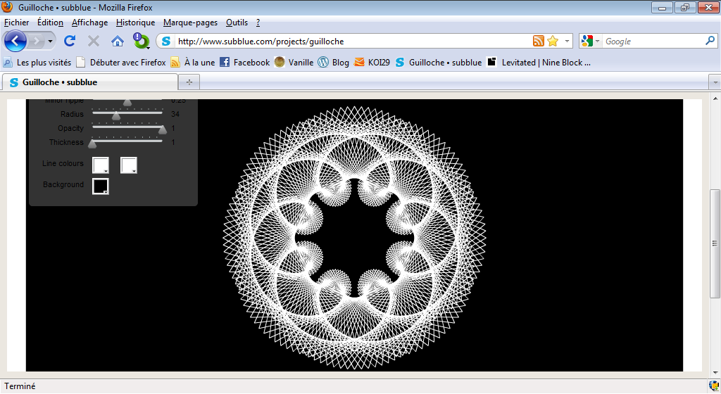 Guilloché est l’un des très beaux générateurs mathématiques du site Subblue.