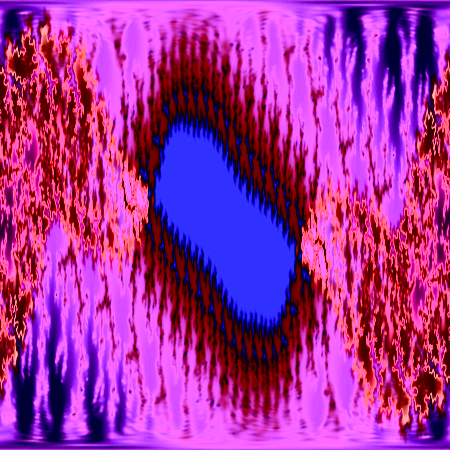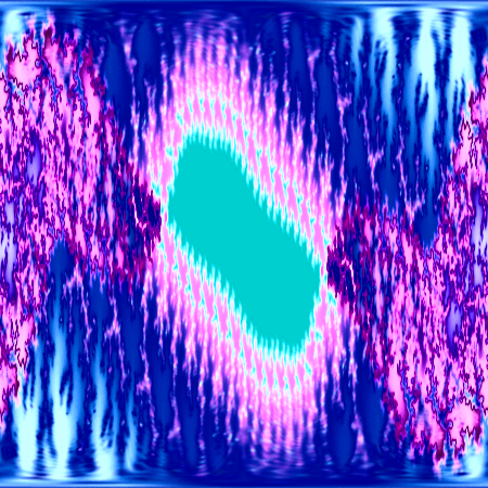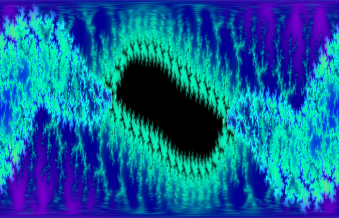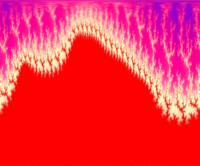 Au départ, la première fractale que nous donne le freeware Quickman, je me suis intéressée à ses nombreuses branches jusqu’à ce que les “franges” d’une des surfaces noires me semblent “coralliennes”. Permutation des couleurs…