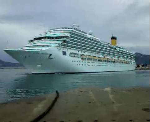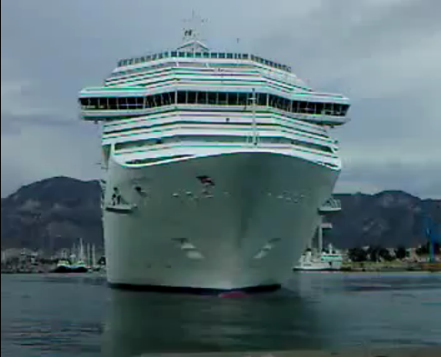deux saisies d’écran réalisées par votre servante sur une vidéo qui la montre manœuvrant doucement dans le port de Savone