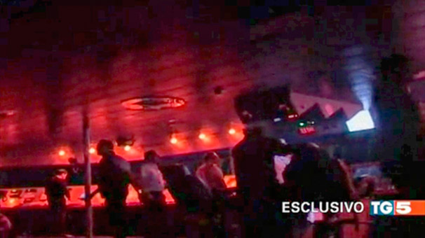 - Quatrième surprise : il y avait vraiment beaucoup de monde, le soir du 13 janvier sur la passerelle de la Concordia. J’ai choisi une saisie d’écran tellement éclaircie qu’elle donne une piètre idée de la qualité de la vidéo de départ, mais souvenez-vous, il y avait une coupure d’électricité générale et c’était en pleine nuit. Il faisait déjà nuit quand la Concordia a quitté son dernier port d’embarquement.