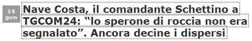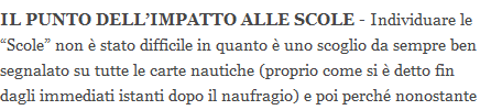 L’éperon rocheux contre lequel a heurté à babord la quille de la COSTA Concordia le soir du 13/01/2012 n’était pas signalé sur les cartes dont disposait le Commandant SCHETTINO à son bord.