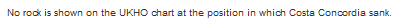 Le rocher à cause duquel la COSTA Concordia a du être échouée par le Commandant SCHETTINO n’apparait pas sur la Carte Nautique de l’UKHO.