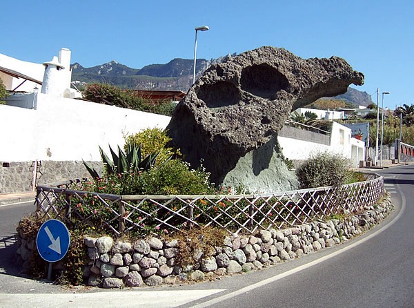 Un gros échantillon de cette roche utilisé en décoration urbaine, à ISCHIA :