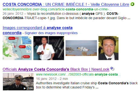 Bonsoir Monique-Mauve et merci d’avoir lu et commenté mon post sur le défouloir de krn. Je crois aussi que le commandant Schettino n’est pas l’incapable qu’on dit. Il y a une polémique dont je n’ai pas eu le temps de prendre connaissance, je ne me prononce donc pas. Marin moi même, je sais qu’il est particulièrement utile de surveiller les amers lorsqu’on s’approche d’une côte, même connue. Je suis presque certain qu’il y a eu une méprise sur le lieu. J’ajoute que ça fait plaisir de voir que tout le monde ne hurle pas avec les loups.