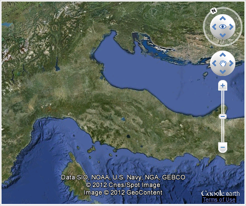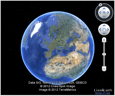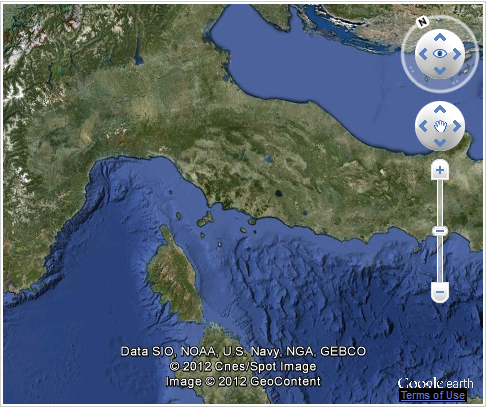 et vous voyez le globe terrestre environné d’étoiles. Vous reconnaissez l’Italie en haut à droite. Cliquez sur la main, deuxième bouton à droite et faites tourner le globe pour amener l’Italie au centre de l’écran.