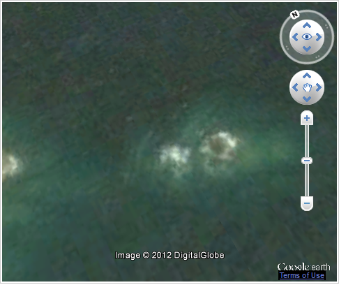 Vous y êtes. Calez-vous sur la “chose” qui n’émerge pas et agrandissez, agrandissez, placez-la en bas de l’écran pour mieux la voir de face car le globe terrestre est sphérique et c’est en bas que vous la verrez le mieux. Je vous laisse terminer tout seuls. J’ai gardé la pointe du 3ème écueil connu du Scole en repère.