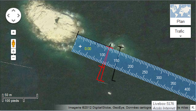 Plaçons la seconde règle sur le second petit écueil du Scole perpendiculairement à la première :