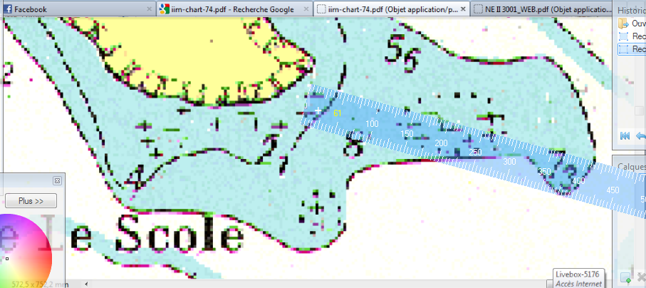 2. étude de la position du rocher blanc par rapport aux trois écueils du SCOLE sur la carte nautique iim-chart-74 que vous connaissez déjà