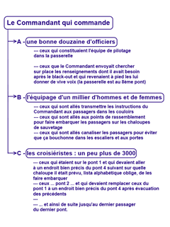 — ont oublié que pour guider un bateau il faut tout un équipage en général et que pour piloter un bateau géant en particulier, il y a plusieurs Commandants aux côtés du Commandant qui commande et toute une voie hiérarchique à descendre avant que les ordres ne soient exécutés au niveau du navire