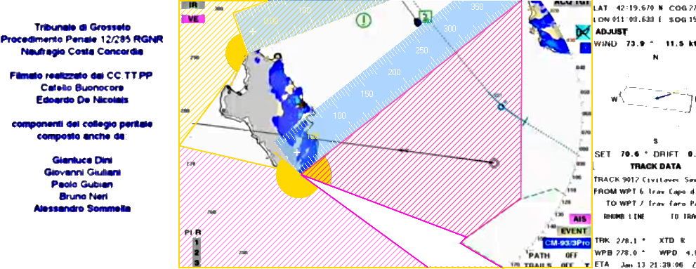 Une fois la Concordia échouée, les deux balises fonctionnent à Giglio-Porte. Pour les voir, il faut regarder avec la loupe éventuellement, ou en plein écran, mais là elles fonctionnent – à leur façon à elles – toutes les deux.