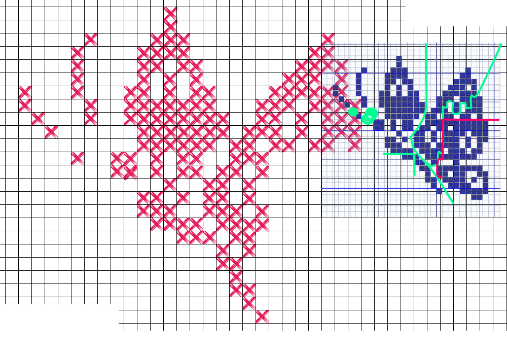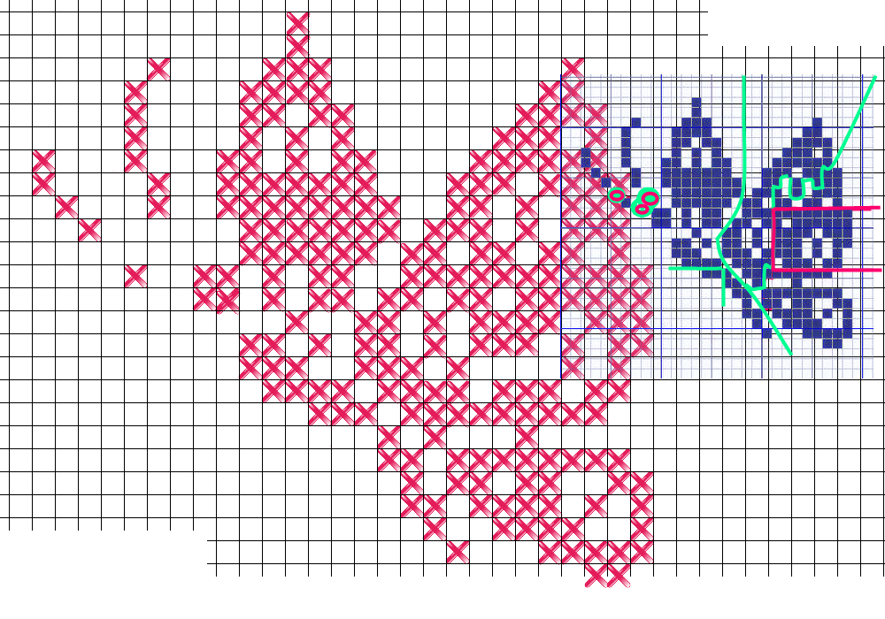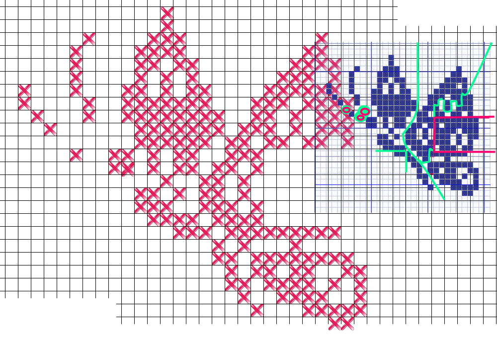 et en gardant sous la main le point de croix et la “broderie” :