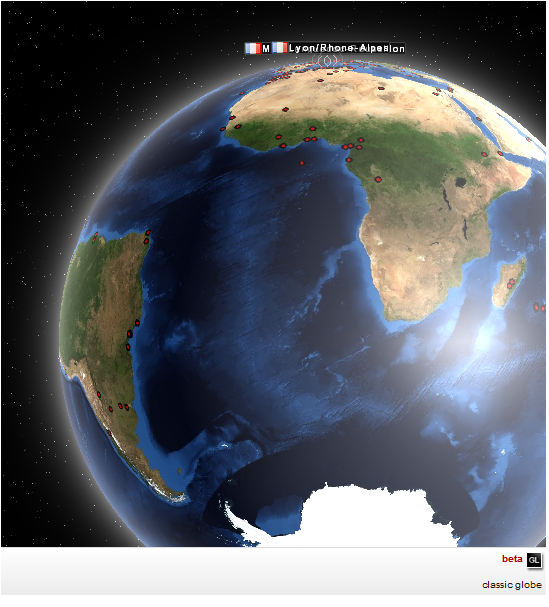 Voici un globe et une planisphère que vous pouvez manipuler vous-mêmes en cliquant sur le tout dernier bouton de la colonne de droite du blog si vous le désirez: