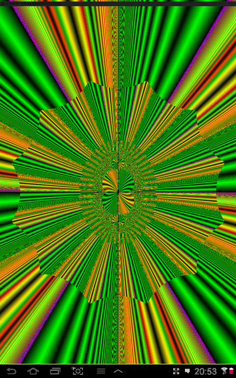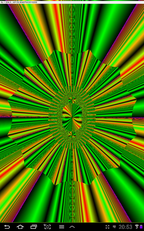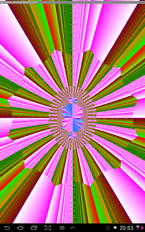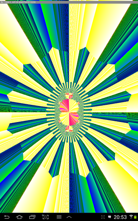 et le cœur de cette fractale obtenue au moyen du freeware pour ANDROID fracZi Lite , sur ma tablette, me fait penser à un trèfle à quatre feuilles :