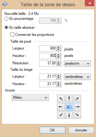•  Isolons un carré de 800 pixels de côté en centrant :