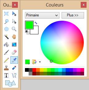 - récupérons le vert du masque avec la pipette, il devient la couleur primaire