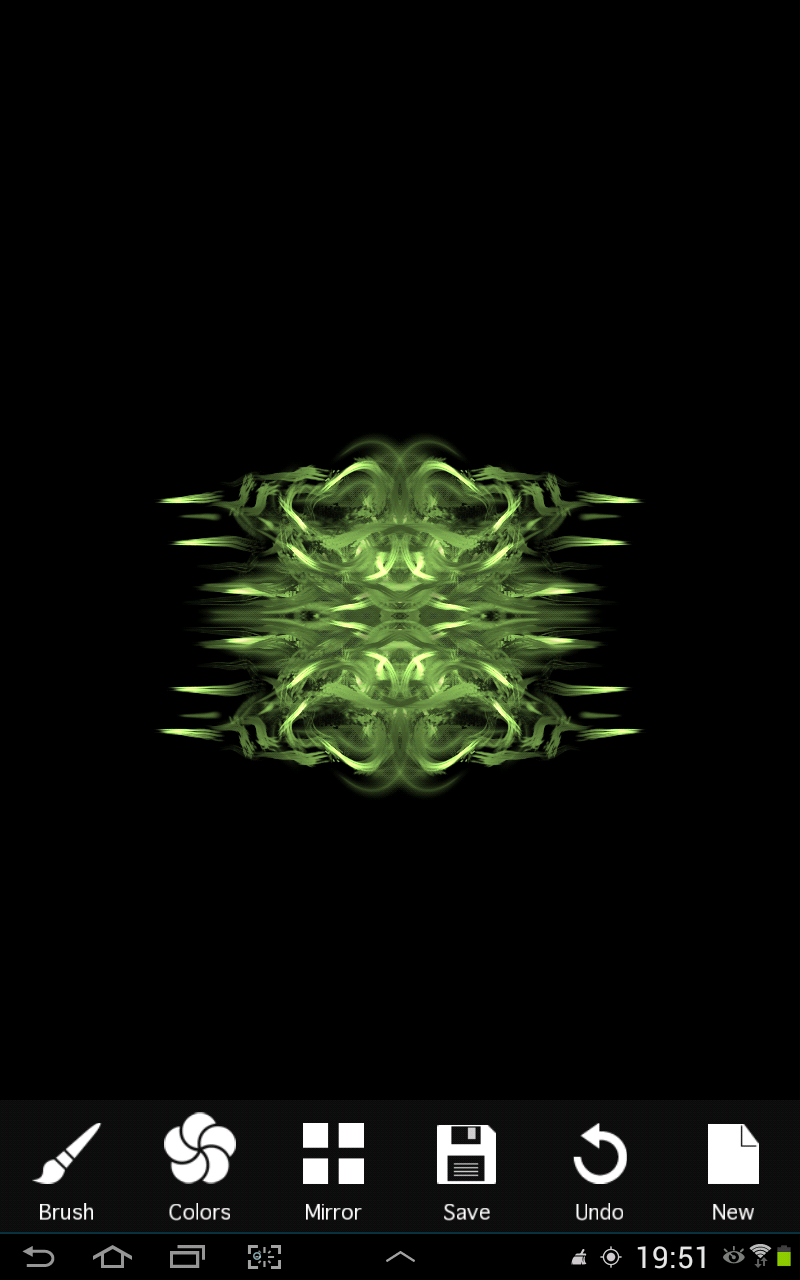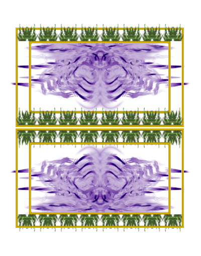 Essayons un rapide exemple à partir de motifs obtenus sur la tablette avec Fingerpaint Magic pour ANDROID, l’un évoquant les pins et l’autre la vigne