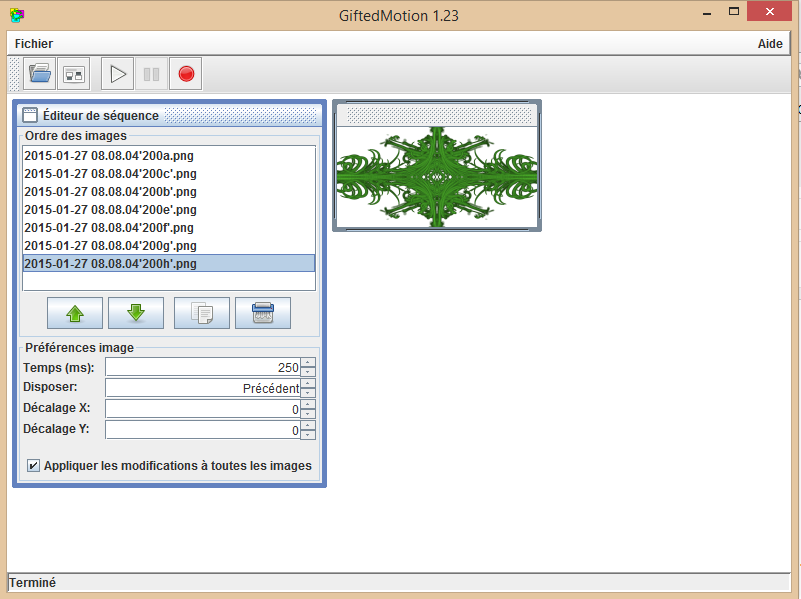 On vérifie que les images sont dans le bon ordre, rectifiant éventuellement grâce aux flèches vertes qui les font descendre ou monter dans l’ordre de présentation.