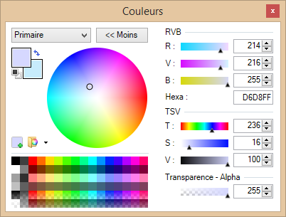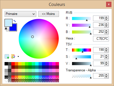 Éclaircissons le bleu le plus clair sans changer de camaïeu en déplaçant le curseur de la ligne « S »