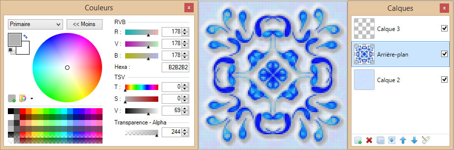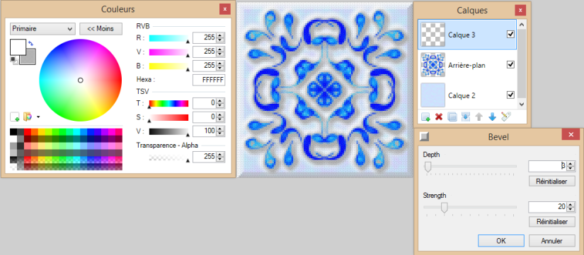 et créons le fond bleu clair du carreau assorti au motif par Nuages dans Rendu