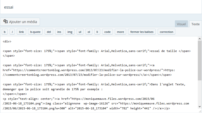 Le code de la page après enregistrement et avant que ne soient écrites ces dernières lignes :