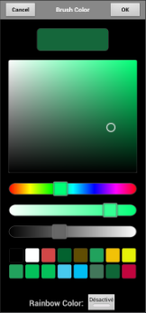 - choix de la couleur par déplacement du curseur sur l’arc-en-ciel