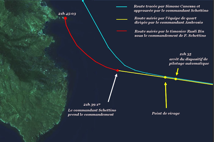Si ce n’est pas une erreur de la presse italienne, ça signifie que tout s’est bloqué à un moment donné après que Francesco SCHETTINO soit remonté en passerelle et avant le choc au SCOLE.