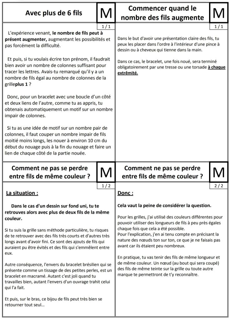 ; bracelets, amitié, fiche, méthode, Petite Méthode