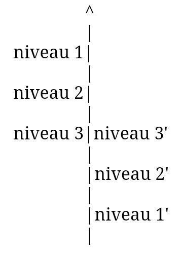 Peigne en position haute : les trous t sont dessus – niveau 1 ; puis les fentes courtes f – niveau 2 ; puis les fentes longues F – niveau 3 (3 niveaux).